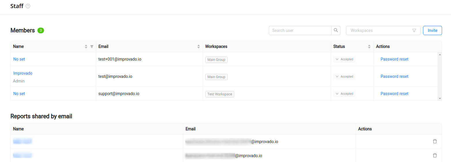 Manage Members page has been completely redesigned for all users no matter if workspaces are enabled for them or not. The Employees and Invited users are now combined into the new Members table.