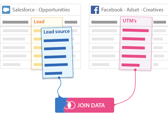 Mary needs to aggregate all this data from multiple SaaS platforms and join them together in order to get a holistic picture of every dollar that has been spent and how it impacts ROI and actual sales.