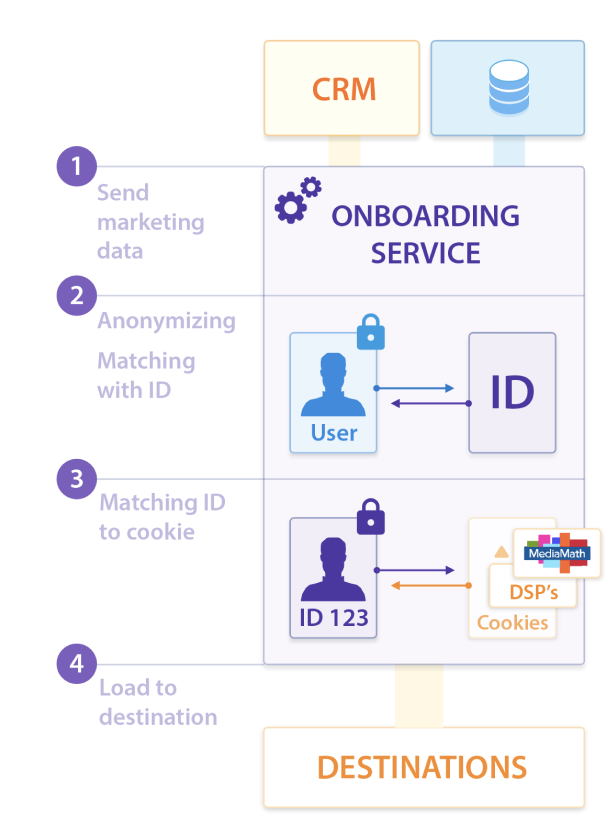 For example, if you want to connect email addresses with offline data from publicly available databases such as home ownership, or credit card purchase data from Mastercard, an on-boarder would help you do this.