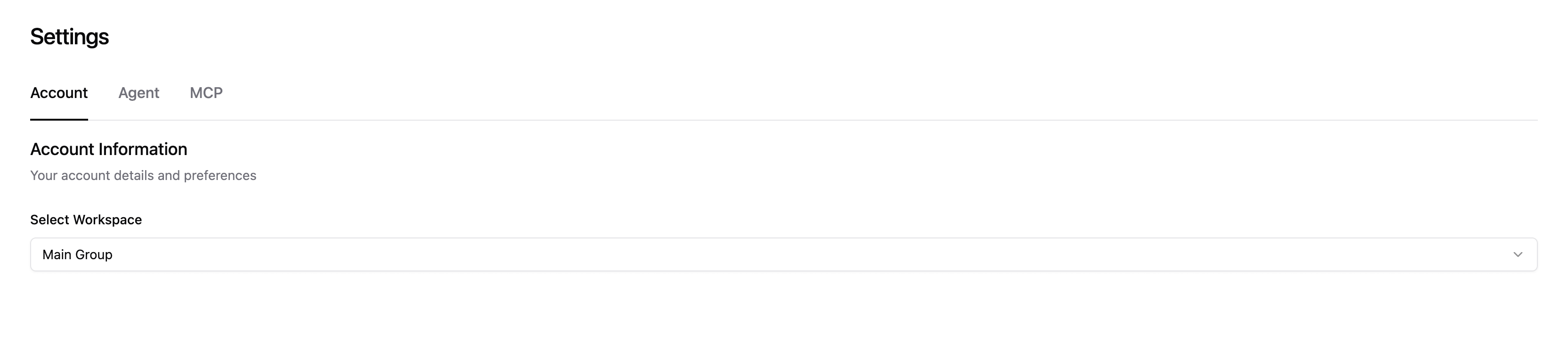 In the settings menu, you can choose which Workspace you want the Agent to operate in. Once selected, the Agent will instantly switch to that workspace’s data context, including access to relevant tables, metrics, and rules.