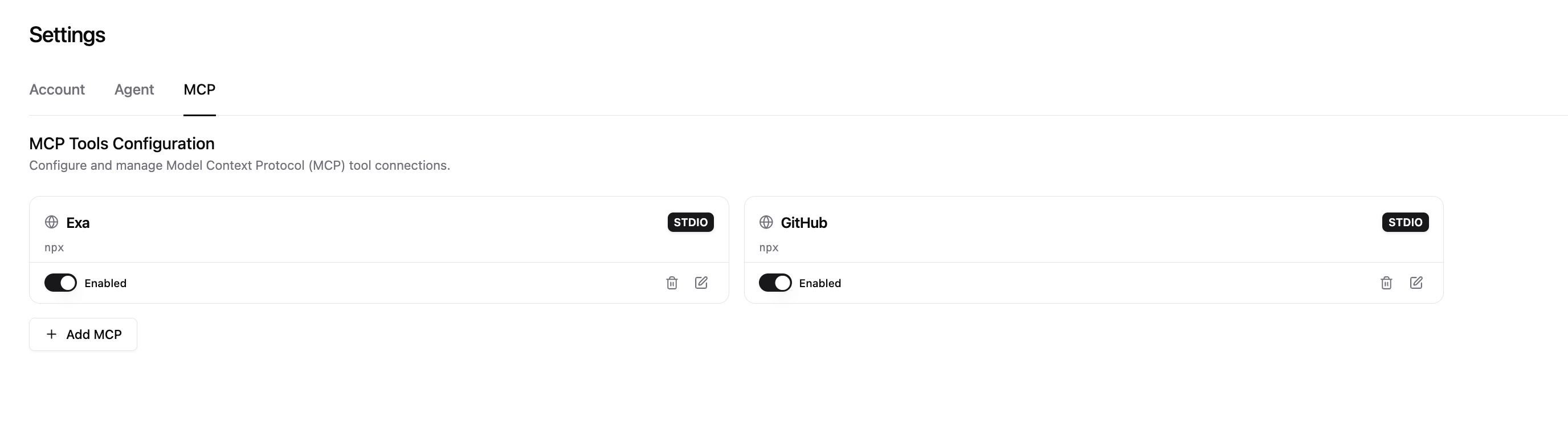 MCP stands for Model Context Protocol — it’s a universal plugin system that allows the Agent to connect to any external tool or service, such as Google Ads, Salesforce, Gong, and thousands more.