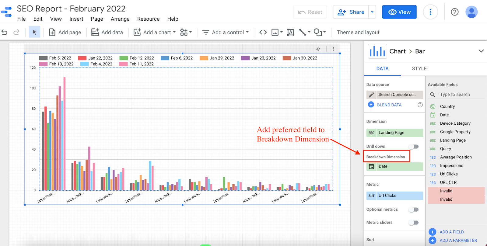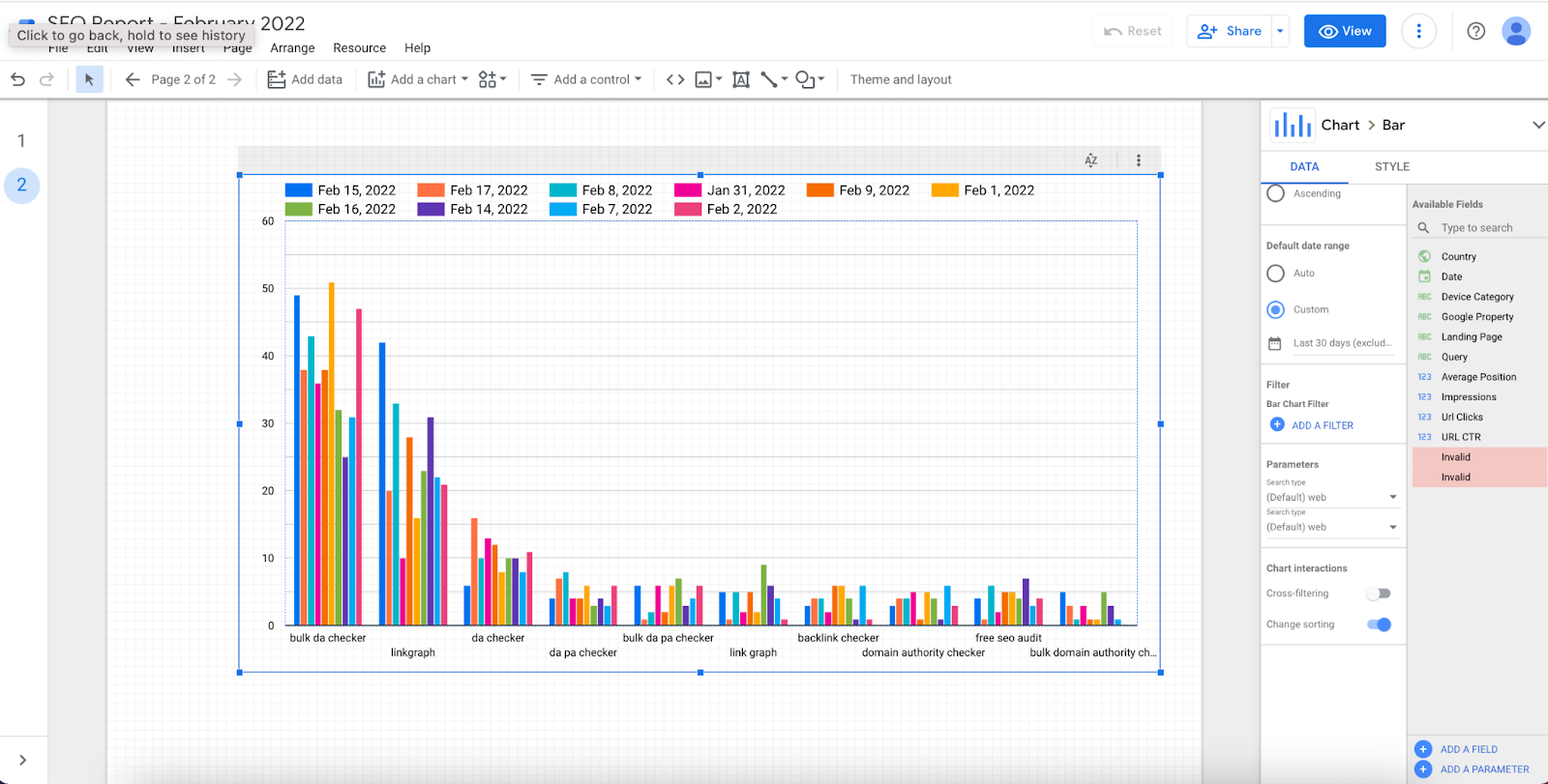 This means SEO providers can easily create dashboards and update them on a monthly or quarterly basis without having to recreate new parameters, visualizations, and fields each time.
