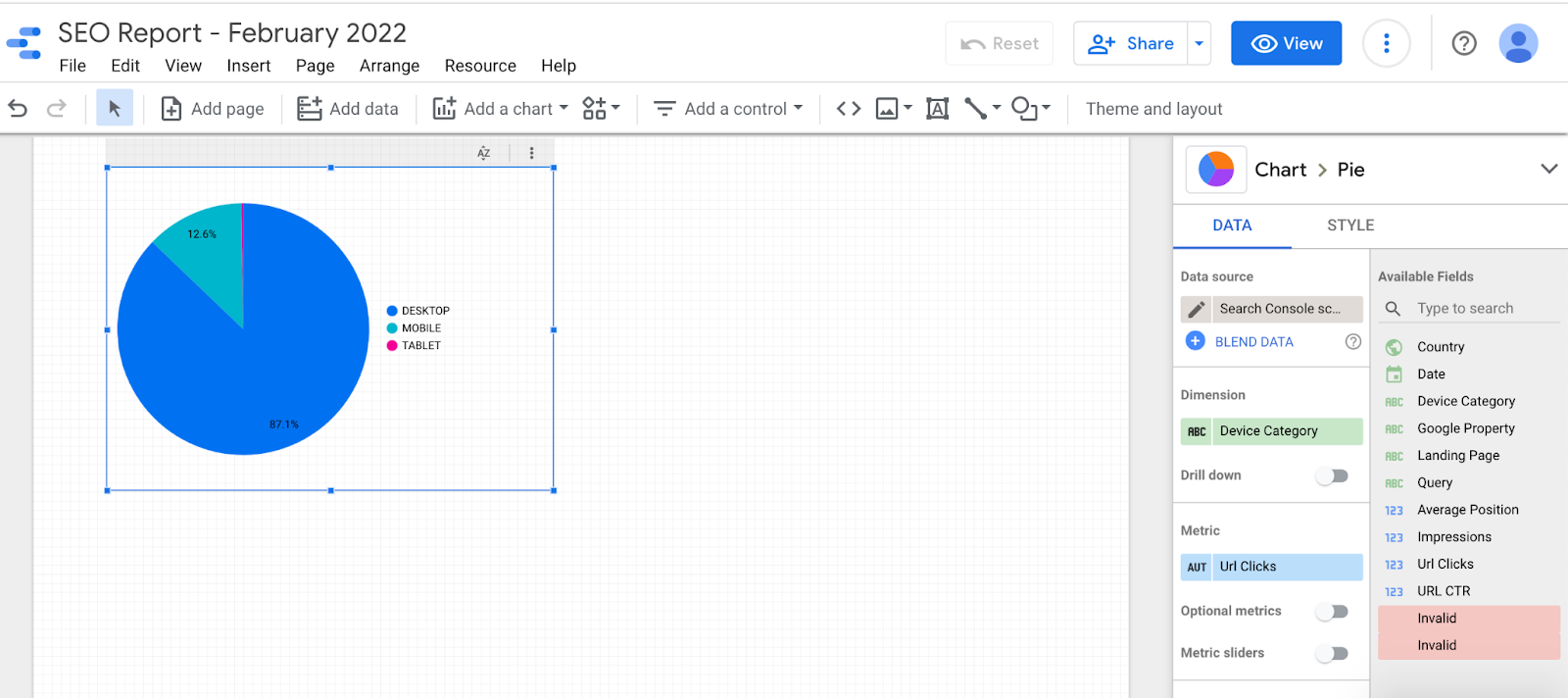 If knowing the type of device your organic visitors are using is helpful to your SEO strategy, add a pie chart in the same way as the above data representations.
