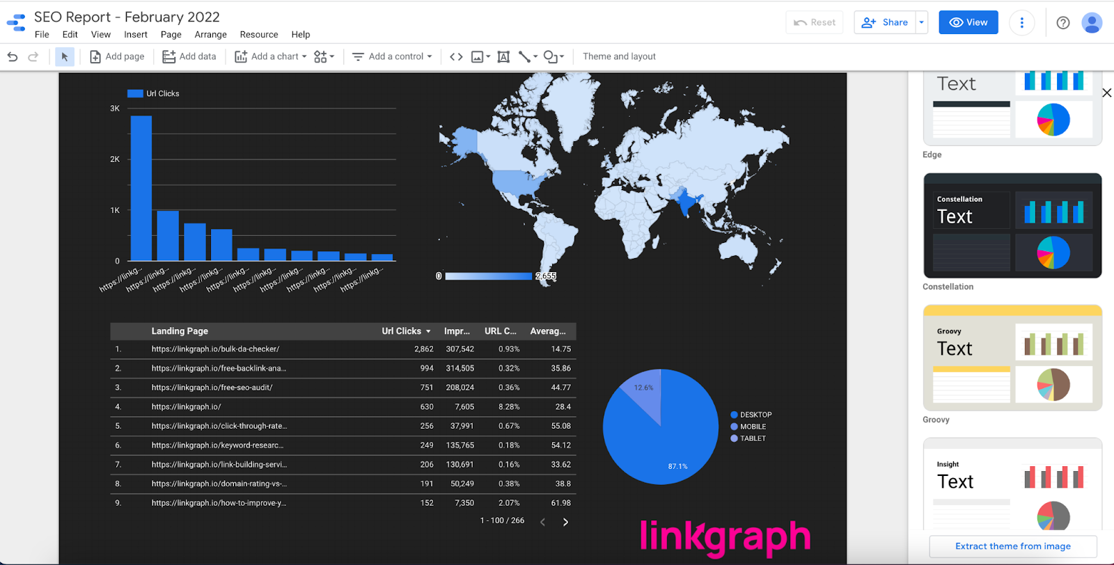 Beyond being free, Google Data Studio’s ease of use and user-friendly interface makes it easy for anyone to create and customize their SEO dashboards and reports.