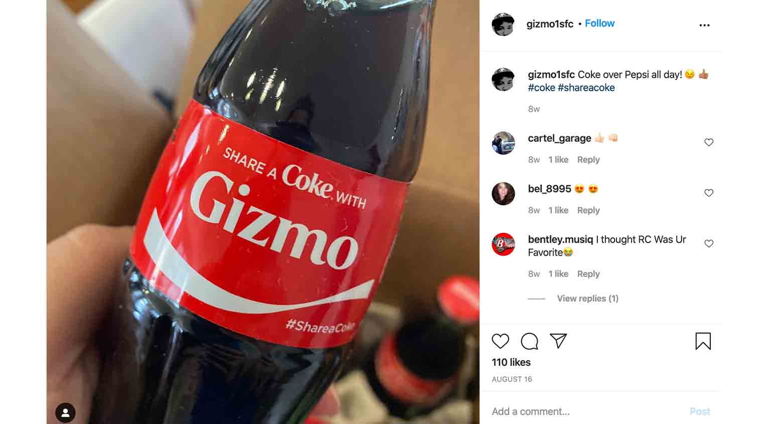 For the Evangelist Phase, look at brand mentions and the use of your hashtags. Evangelists and advocates are those satisfied with your product and are likely to suggest your brand to their friends. Users who generate UGC (user-generated content) may be considered evangelists. Check out the example of an evangelist above. Delighted Twitter user gizmo1sfc posted a picture of a Coke bottle on Twitter. The user even compared Coke with its competitor Pepsi, saying Coke would always be his preferred product.